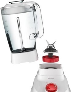 يتميز خلاط سوبر من مولينكس (بقوة 700 واط) بسرعتين بالإضافة إلى وظيفة النبض الفعلي لتمنحك القوام المثالي الذي تريدينه في جميع الأوقات. يأتي هذا الخلاط مع إبريق يُقفل في مكانه لضمان التشغيل الآمن. كما أنه يتميز بمقبض مريح يوفر لكِ قبضة قوية ومريحة لمزيد من التحكم به.غطاءها محكم بإحكام لمنع الانسكاب دون إحداث أي لون من ألوان الفوضى. ويسمح لك كوب القياس بإضافة كميات صغيرة من المكونات بدقة عالية.